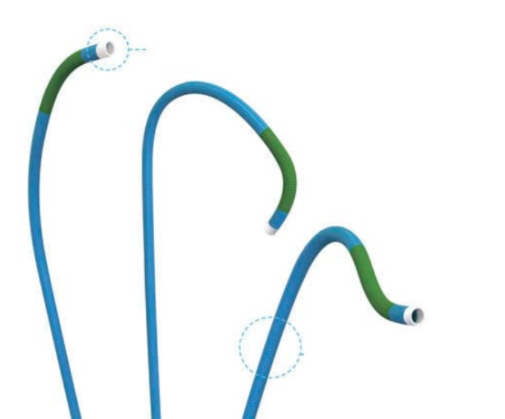Das proximale Ende des Katheters besteht normalerweise aus härteren Materialien, um eine gute Druckkraft und Manövrierfähigkeit zu gewährleisten, während das distale Ende aus weicheren Materialien besteht, um seine Flexibilität zu erhöhen, sodass es sich besser an die Biegung und Verdrehung der Blutgefäße anpassen kann. Dieses mehrstufige Härtedesign kann sicherstellen, dass der Katheter während des Vorschubvorgangs ausreichend Halt bietet und Schäden an der Blutgefäßwand reduziert, wodurch die Genauigkeit und Sicherheit der Operation verbessert wird.