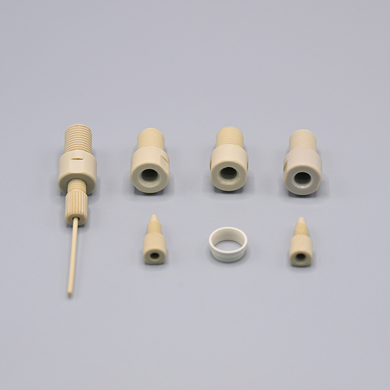• PEEK-Material zeichnet sich durch hohe Härte, Korrosionsbeständigkeit und hohe Temperaturbeständigkeit von 260 °C aus und kann Metallkomponenten ersetzen.